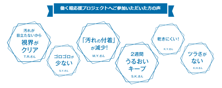効率的に仕事をこなすには、集中力・コミュニケーション力などのパフォーマンスを一日中発揮することが求められますが、汚れがつきやすいレンズや乾燥しやすいレンズを長時間装用すると疲れ目の原因になり、パフォーマンス低下の要因にも。