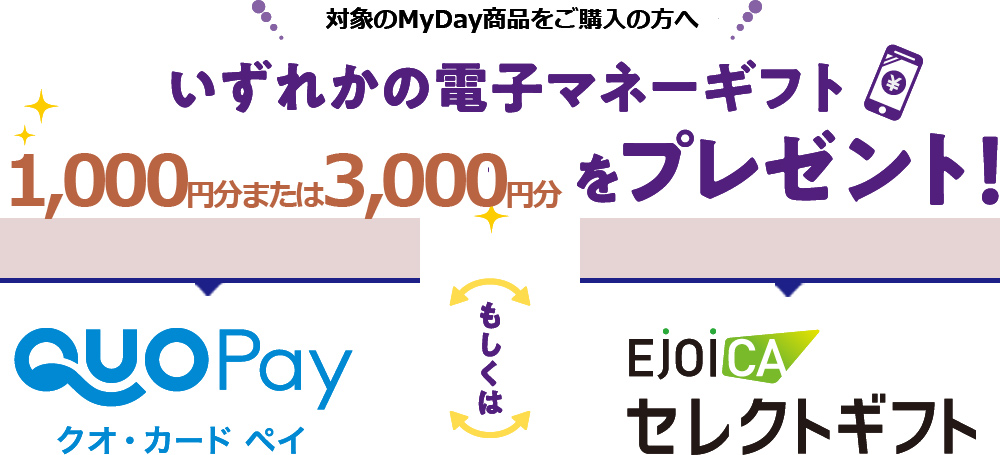 MyDay 電子マネーギフト「クオカード・ペイ」また「はEJOICAセレクトギフト」プレゼント