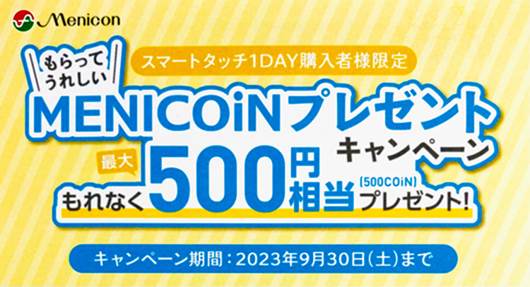期間中、対象製品を2箱以上ご購入された方へもれなくMENICOiN最大500円相当プレゼント!