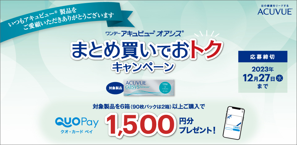 「アキュビュー® まとめ買いでおトク キャンペーン」についてのお問い合わせは株式会社クオカードではお受け出来ません。