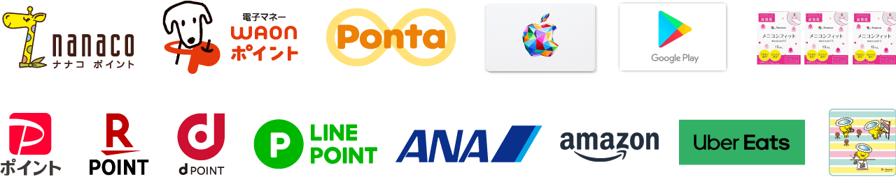 たまったポイントは、1COiN=最大1円相当でお好きなポイントサービスやケア用品・グッズに交換することができます。